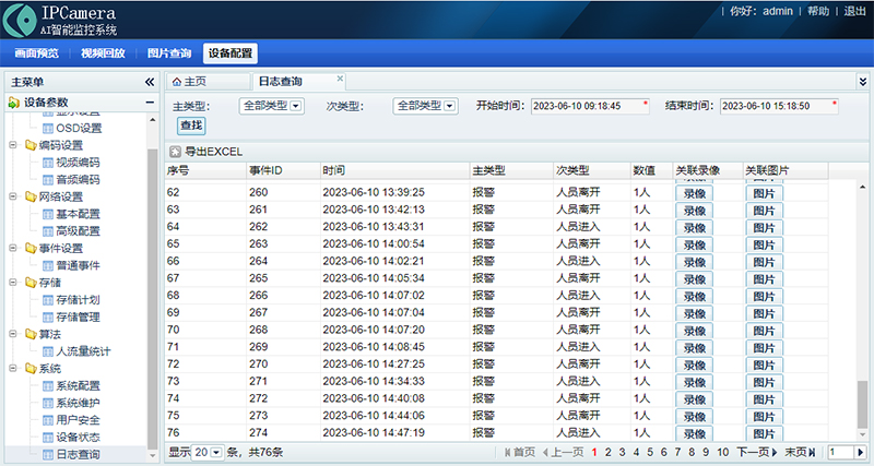 | 智能算法 | 移动检测、越线检测、入侵检测、区域进入/离开检测、区域人数统计、人流量统计 |